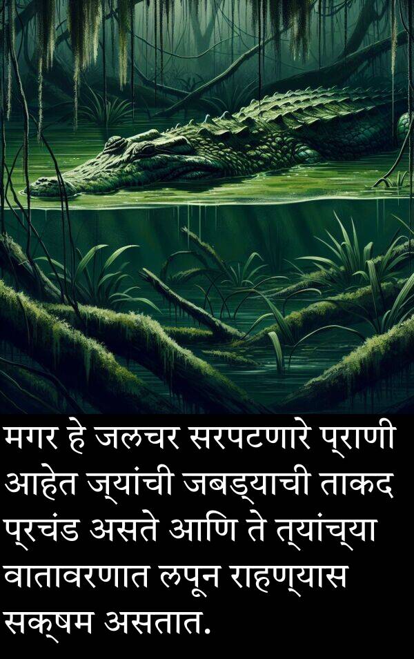 मगर हे जलचर सरपटणारे प्राणी आहेत ज्यांची जबड्याची ताकद प्रचंड असते आणि ते त्यांच्या वातावरणात लपून राहण्यास सक्षम असतात.