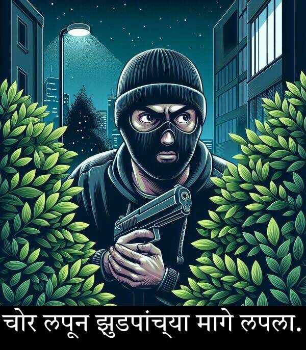 «लपून» सोबत लहान आणि सोपी वाक्ये—मुलांसाठी/विद्यार्थ्यांसाठी उपयुक्त; सर्वसाधारण संयुगे आणि संबंधित शब्दांसह.