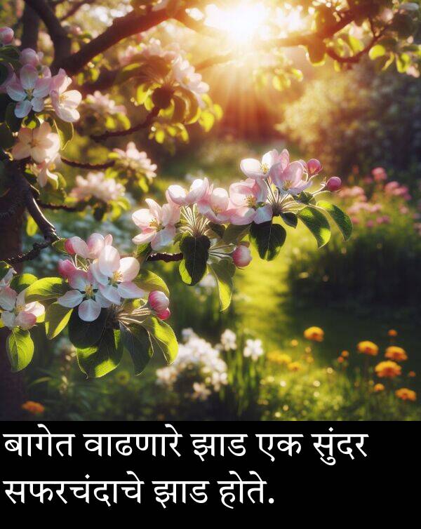 «झाड» सोबत लहान आणि सोपी वाक्ये—मुलांसाठी/विद्यार्थ्यांसाठी उपयुक्त; सर्वसाधारण संयुगे आणि संबंधित शब्दांसह.