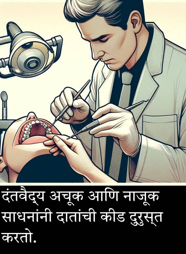 «दंतवैद्य» सोबत लहान आणि सोपी वाक्ये—मुलांसाठी/विद्यार्थ्यांसाठी उपयुक्त; सर्वसाधारण संयुगे आणि संबंधित शब्दांसह.