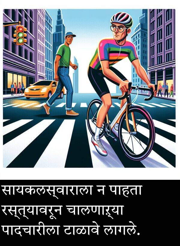 सायकलस्वाराला न पाहता रस्त्यावरून चालणाऱ्या पादचारीला टाळावे लागले.