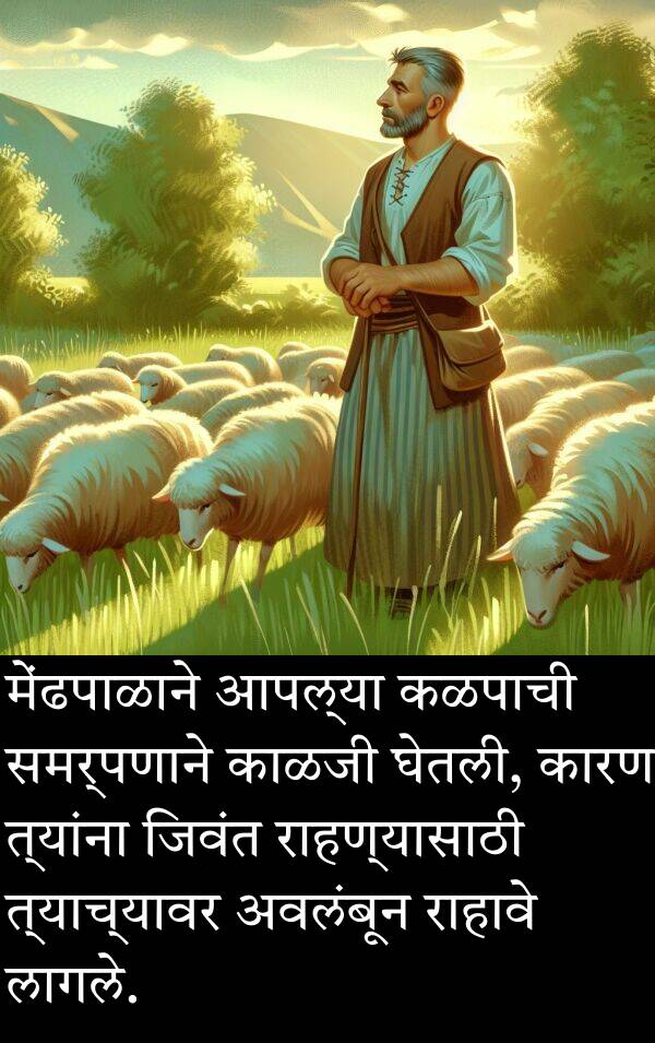 मेंढपाळाने आपल्या कळपाची समर्पणाने काळजी घेतली, कारण त्यांना जिवंत राहण्यासाठी त्याच्यावर अवलंबून राहावे लागले.