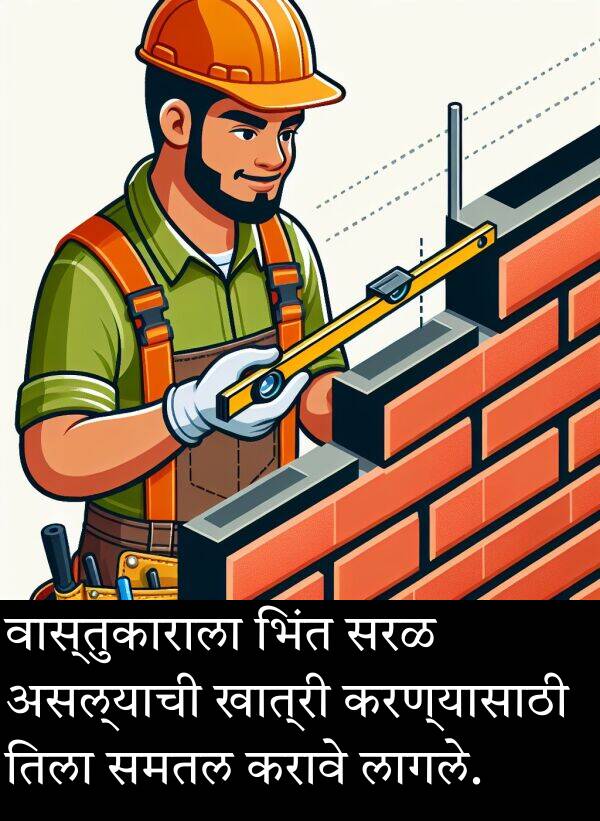 वास्तुकाराला भिंत सरळ असल्याची खात्री करण्यासाठी तिला समतल करावे लागले.
